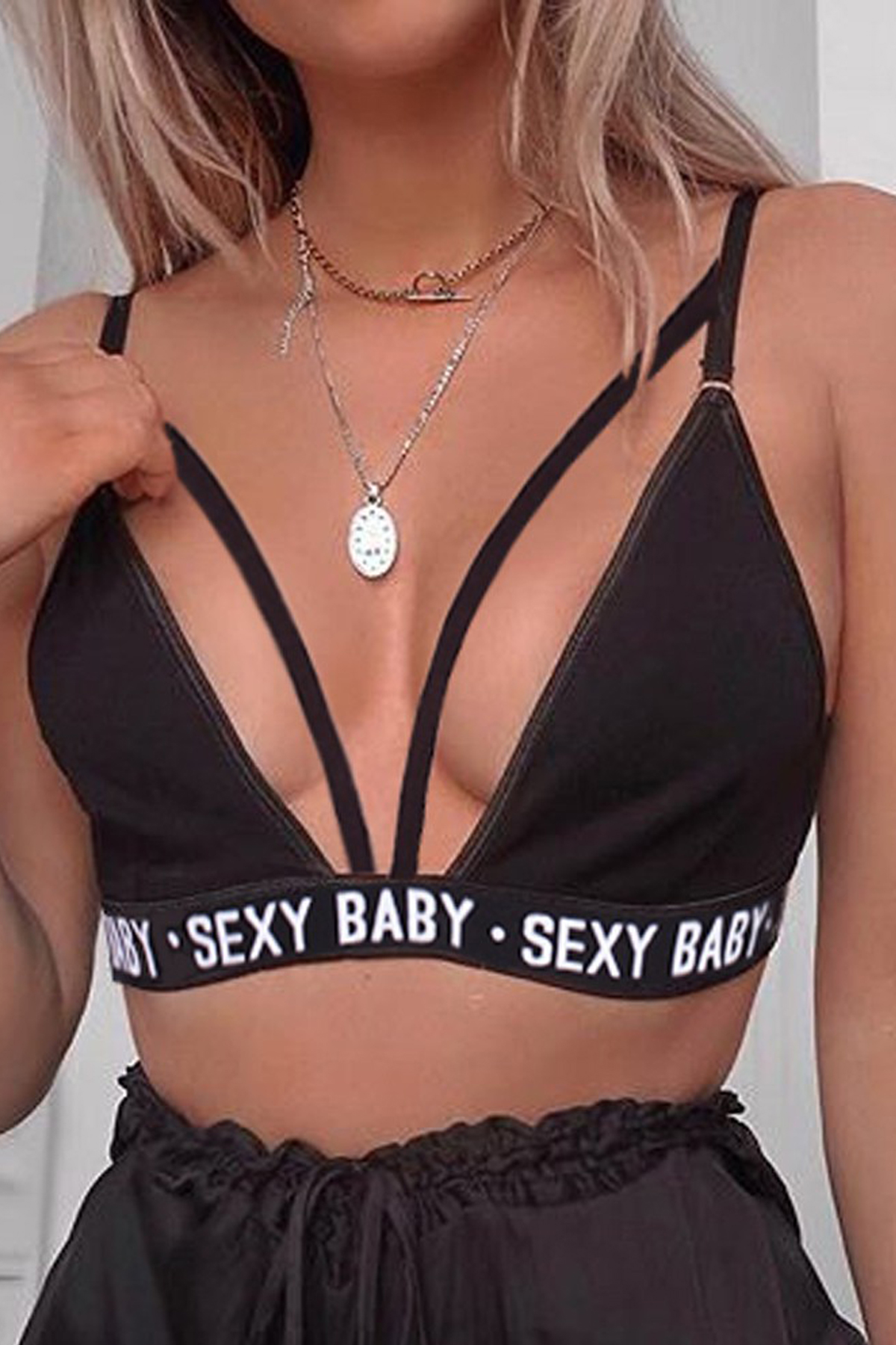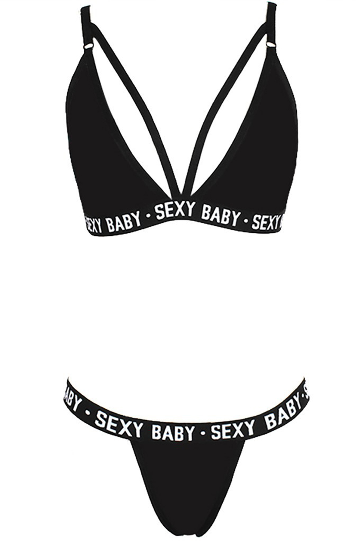 Kadın Siyah Yazı Detaylı Ipli Sütyen Takımı